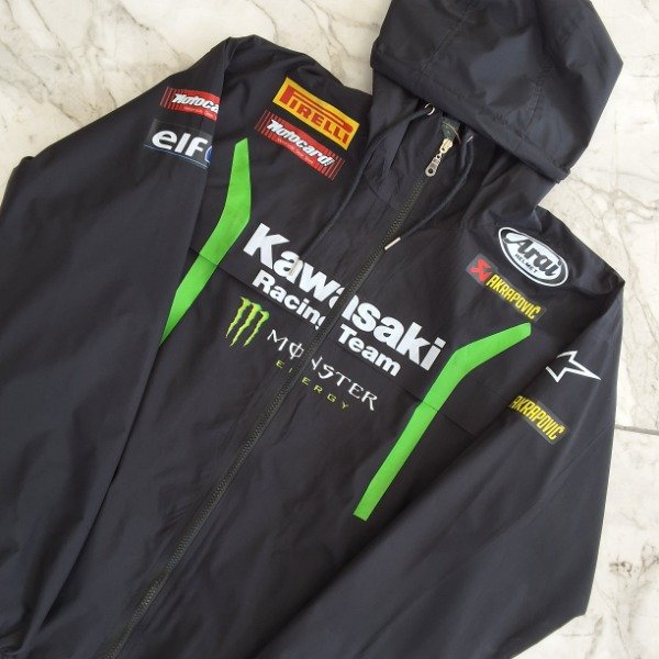 Sentí la potencia con esta campera rompevientos de Kawasaki Racing Team. Con un diseño técnico en color negro y los icónicos detalles en verde lima, esta prenda cuenta con todos los logos de los sponsors que acompañan al equipo en la pista. Es la protección ideal para los fanáticos que buscan un estilo profesional y resistencia frente al clima.