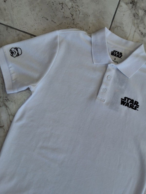 Llevá el poder del Imperio con vos. Esta chomba combina un diseño minimalista en blanco puro con el icónico logo de la saga y un detalle de Stormtrooper en la manga. Es la prenda perfecta para quienes buscan un estilo impecable sin dejar de lado su pasión galáctica.