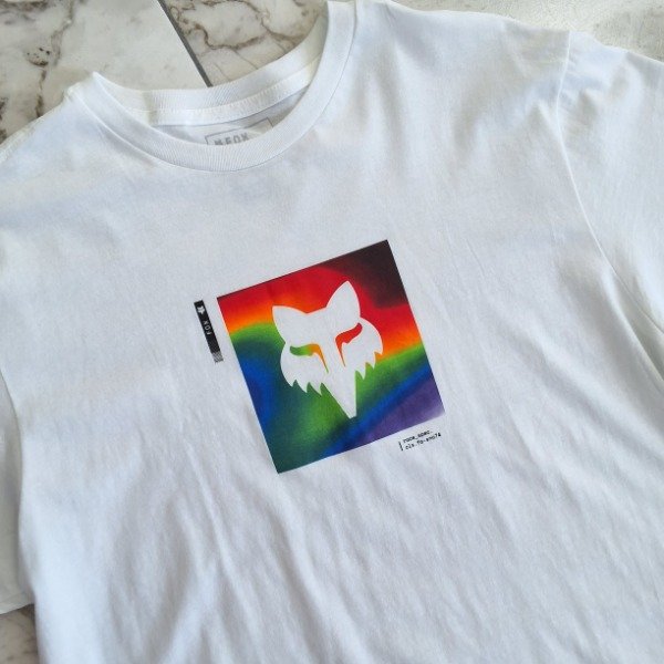 Dale un giro vibrante a tu estilo con esta remera Fox en color blanco. Este diseño destaca por presentar el legendario "Fox Head" enmarcado en un cuadrado con un degradado de colores tipo espectro. Es una prenda ligera, llamativa y perfecta para quienes quieren sobresalir con un look fresco y original.