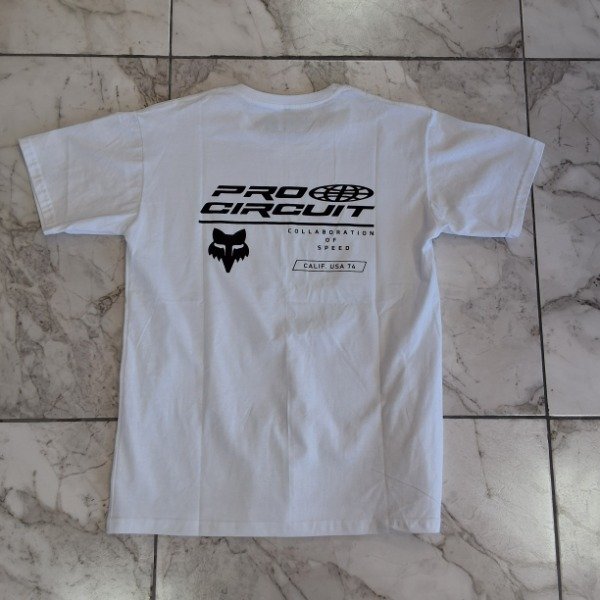 Maximizá tu estilo en la pista con la remera Collaboration of Speed. Diseñada fruto de la alianza entre dos gigantes del motocross, Fox Racing y Pro Circuit, este modelo combina un algodón de primera calidad para un confort superior con una estética "racing" impecable en color blanco y detalles negros. Gracias a su diseño con estampados tanto frontales como traseros de alta definición, es la opción ideal para fanáticos y pilotos que buscan mostrar su pasión por la velocidad con un look técnico y auténtico.